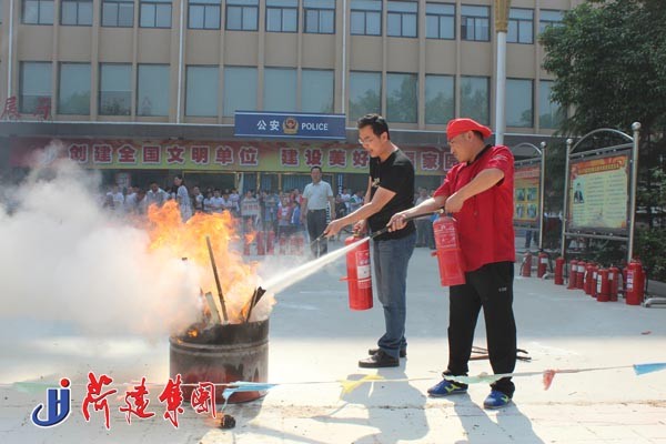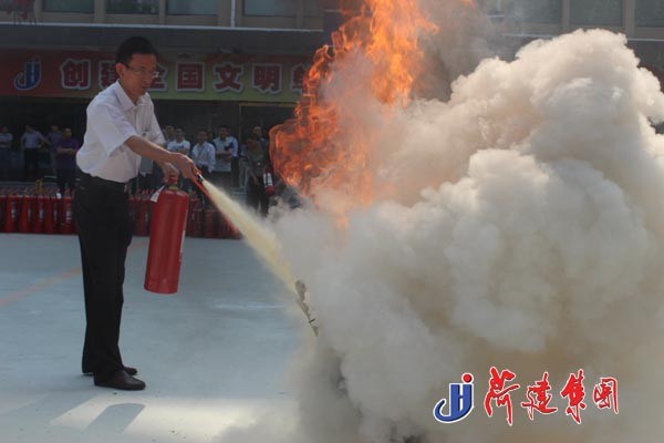 市消防公司莊兆海同志首先給大家詳細講解了滅火器滅火的的操作要領(lǐng)。在四個小組組長的指揮下,演練人員按照操作要領(lǐng),分別進行了滅火演練。演練人員手提滅火器奔向“火災(zāi)現(xiàn)場”,大火在滅火器干粉的噴射下瞬間被撲滅。