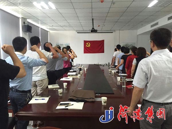 會(huì)議開始前,黨支部全體黨員面向黨旗莊嚴(yán)宣誓,重溫了入黨誓詞。