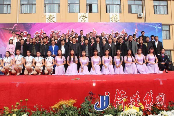 ![]() 與會(huì)領(lǐng)導(dǎo)與全體教職工、學(xué)生演員合影留念