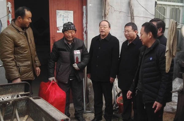 根據(jù)市委扶貧開發(fā)領(lǐng)導(dǎo)小組安排部署,12月15日上午,集團(tuán)黨委書記、董事長李信強(qiáng),總經(jīng)理苗林帶領(lǐng)集團(tuán)扶貧工作隊(duì)及駐村第一書記,到成武縣孫寺鎮(zhèn)6個(gè)幫扶行政村暨雙聯(lián)雙創(chuàng)聯(lián)系村,開展“幫扶走訪送溫暖”活動(dòng),為缺少過冬御寒物品的五保戶和貧困孤兒送去了棉被、被套和保溫杯等慰問品。孫寺鎮(zhèn)黨委書記高海民等陪同走訪慰問。
