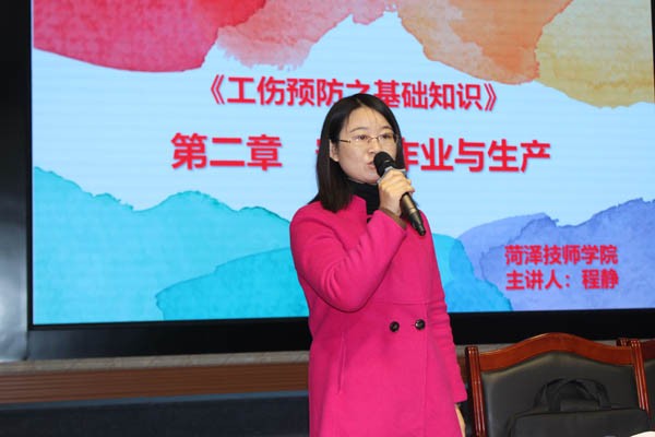 菏澤技師學(xué)院高級講師程靜從安全色與安全標志、勞動防護用品、觸電工傷事故與預(yù)防、機械傷害與預(yù)防、火災(zāi)與爆炸、施工現(xiàn)場案例分析等六個部分,并結(jié)合生產(chǎn)生活實際,為大家進行了生動形象的講解,深入淺出、讓人受益頗深。