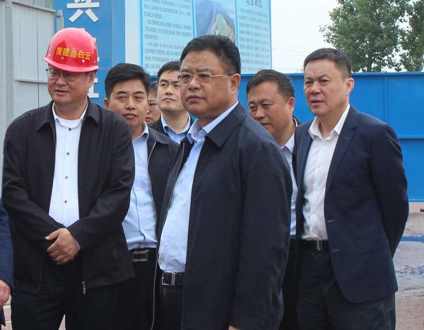 ![]() 開發(fā)區(qū)黨工委書記、管委會(huì)主任李國珍(右二)調(diào)研工地