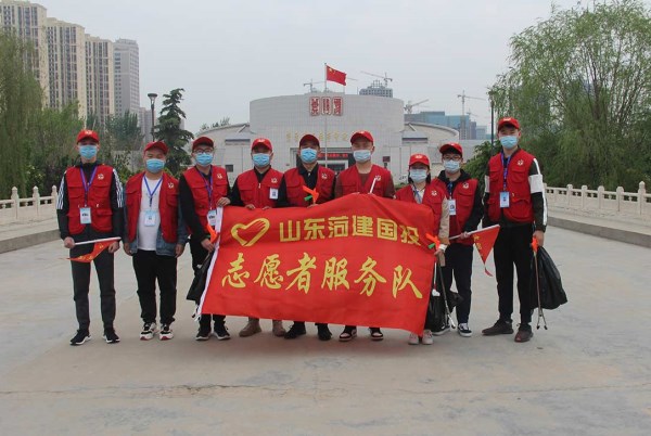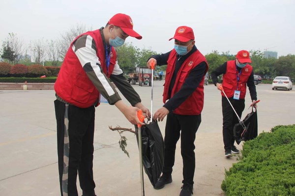 ![]() 菏建國投黨委副書記任永信(中)和志愿者一起撿拾垃圾 |
