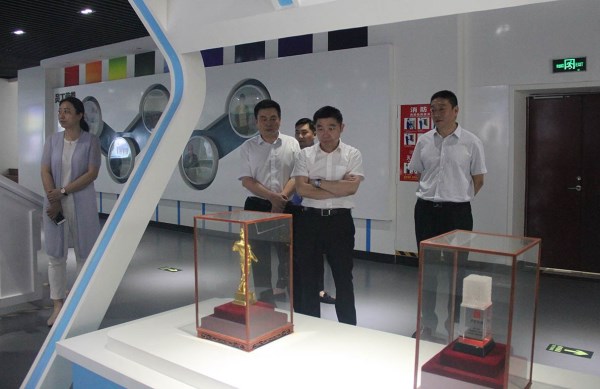 ![]() 浙商銀行濟南分行行長張強一行參觀菏建國投公司企業(yè)文化展廳 |
