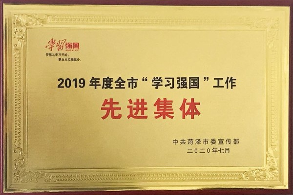 菏建國投公司獲評2019年度菏澤市“學習強國”工作先進集體