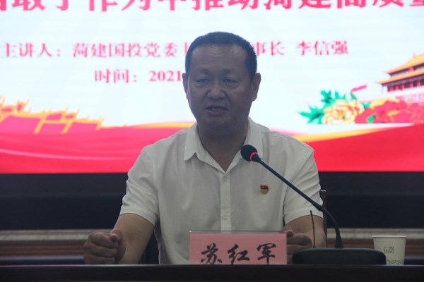 按照菏建國投黨委黨史學(xué)習(xí)教育工作安排,7月3日,菏建國投黨委書記、董事長李信強(qiáng)以“銘刻百年黨史,熔鑄理想信念,在勇于擔(dān)當(dāng)、敢于作為中推動菏建高質(zhì)量發(fā)展”為主題,為公司全體黨員上了一堂生動的黨史學(xué)習(xí)教育專題黨課。菏建國投黨委副書記、總經(jīng)理蘇紅軍主持會議。菏建國投黨委班子成員、機(jī)關(guān)全體,各權(quán)屬單位和三級單位領(lǐng)導(dǎo)班子全體參加會議。