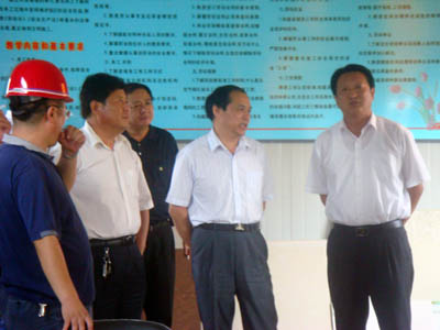 8月2日下午,省建管局局長宋瑞乾率領(lǐng)省安全與穩(wěn)定督察組一行到菏澤大劇院檢查指導(dǎo)工作。在市建設(shè)局王乃光局長陪同下,宋局長一行聽取了由菏建集團(tuán)副總經(jīng)理王振國代表總承包單位,就工程概況、施工難點(diǎn)亮點(diǎn)、質(zhì)量安全及新技術(shù)應(yīng)用目標(biāo)、具體保證措施、施工進(jìn)展等五個(gè)方面的工作匯報(bào),詳細(xì)了解工程設(shè)計(jì)、施工進(jìn)度、資金到位等情況,重點(diǎn)詢問工程安全、質(zhì)量、材料等方面的管理情況,同時(shí)檢查了工地農(nóng)民工業(yè)余學(xué)校。宋局長對(duì)菏澤大劇院高起點(diǎn)規(guī)劃、高標(biāo)準(zhǔn)建設(shè)給予高度評(píng)價(jià),對(duì)工地安全生產(chǎn)、工程質(zhì)量等工作予以充分肯定。在講話中,宋局長要求務(wù)必要提高安全思想意識(shí),抓緊抓好安全生產(chǎn)工作,注重對(duì)重大危險(xiǎn)源的預(yù)防和控制,落實(shí)好各項(xiàng)安全措施,確保奧運(yùn)期間和諧穩(wěn)定。同時(shí)指出,省建管局將會(huì)一如既往地關(guān)心大劇院的建設(shè),積極做好協(xié)調(diào)服務(wù)工作,支持申報(bào)“魯班獎(jiǎng)”。市建設(shè)局副局長劉建國、紀(jì)委書記孔令善、建管處主任梁建存,以及菏建集團(tuán)董事長兼總經(jīng)理張廣周、副總經(jīng)理王振國、總工程師邵九憲等陪同檢查。