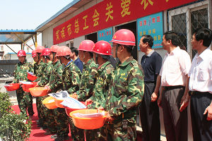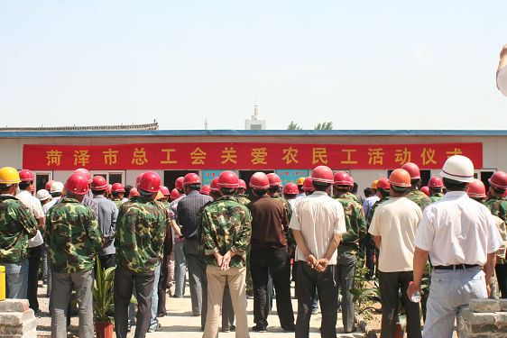 慰問儀式上,市總工會(huì)常務(wù)副主席侯永信代表市總工會(huì)講話,對(duì)農(nóng)民工為城鄉(xiāng)建設(shè)所做出的突出貢獻(xiàn)給予充分肯定和高度贊揚(yáng),表示將繼續(xù)關(guān)心廣大農(nóng)民工的生產(chǎn)生活,辦實(shí)事、辦好事,切實(shí)維護(hù)好農(nóng)民工的合法權(quán)益。張廣周總經(jīng)理在講話中對(duì)市總工會(huì)的關(guān)心和厚愛表示感謝,要求華英嘉園工地一如既往改善農(nóng)民工的工作、生活環(huán)境,千方百計(jì)保障農(nóng)民工的各方權(quán)益,團(tuán)結(jié)一致,互誠互信,把華英嘉園建設(shè)成優(yōu)質(zhì)工程、用戶滿意工程。農(nóng)民工代表在儀式上也做了表態(tài)發(fā)言。