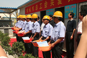 6月1日上午,市人大副主任、市總工會(huì)主席李玉華,市總工會(huì)常務(wù)副主席侯永信帶領(lǐng)市總工會(huì)有關(guān)領(lǐng)導(dǎo)一行,在集團(tuán)公司領(lǐng)導(dǎo)張廣周、李安斌、李信強(qiáng)、任永信、李永亮的陪同下,來到菏建集團(tuán)華英嘉園建筑工地慰問在炎炎烈日下辛勤工作的農(nóng)民工,送來了毛巾、洗臉盆、體恤衫等生活用品。