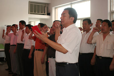 為迎接“七一”建黨88周年,7月1日上午8時(shí),集團(tuán)在辦公室樓一樓大廳舉行重溫入黨誓詞宣誓儀 式。集團(tuán)紀(jì)委書記兼黨辦主任任永信同志主持儀式,集團(tuán)領(lǐng)導(dǎo)張廣周、郭武、李安斌、王振國、李信強(qiáng)、邵九憲、李永亮,以及機(jī)關(guān)全體黨員和集團(tuán)公司08年度預(yù)備黨員參加了宣誓活動(dòng)。
