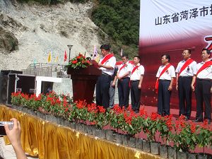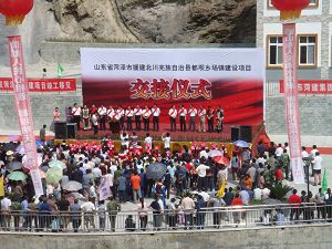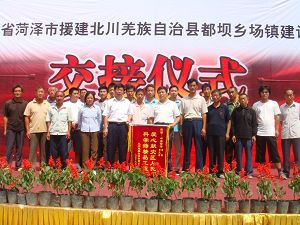 菏澤市委常委、政法委書記岳濱、菏澤市委副秘書長(zhǎng)、接待處主任孔令海、菏澤市廣電局局長(zhǎng)潘若雷等領(lǐng)導(dǎo)同志專程趕到北川參加了交接儀式。山東省援川前線指揮部曲建波、綿陽市政法委副書記江文勇及北川羌族自治縣縣長(zhǎng)經(jīng)大忠等領(lǐng)導(dǎo)同志出席交接儀式并分別做了講話。菏建集團(tuán)黨委書記、董事長(zhǎng)兼總經(jīng)理張廣周同志代表菏建集團(tuán)在交接儀式上做了講話。