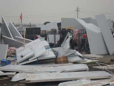 這次大風雖然摧毀了辦公區(qū)域所有臨時設施,有幸的是,所有職工除個別皮膚被劃傷外大都安然無恙。靠磚圍墻搭建的上百間彩板房除個別屋頂糟破壞外,其它并無大礙。這次大風對整個工程的質量、工期不受任何影響,通過這次大風襲擊,我們從中值得接受教訓是:尤其是對我們長期野外作業(yè)的施工單位來說,彩板房的搭建如何加大抗風襲擊的措施應是以后首先考慮的問題之一。