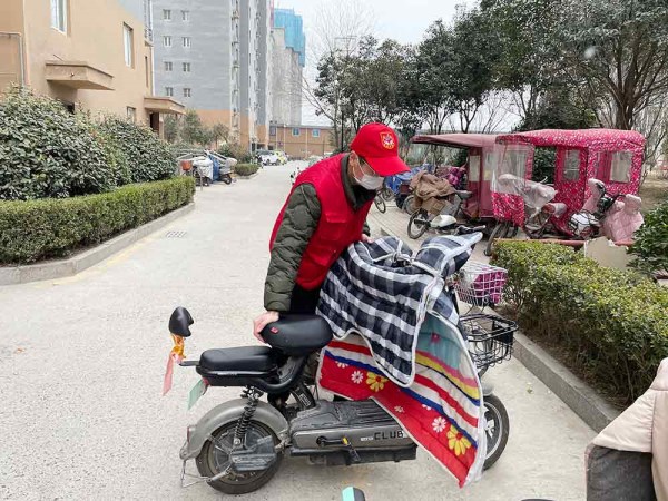 ![]() 志愿者將擺放雜亂的電動(dòng)車(chē)、自行車(chē)搬到指定位置 |