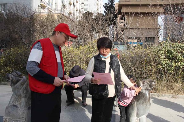 ![]() 志愿者向居民發(fā)放《綠色環(huán)保倡議書》 |