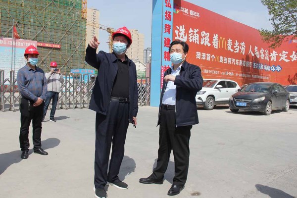 4月9日,副市長肖友華一行到菏建·嘉年華項(xiàng)目現(xiàn)場調(diào)度疫情防控工作。菏建國投黨委書記、董事長李信強(qiáng)及項(xiàng)目相關(guān)負(fù)責(zé)人陪同調(diào)研。
