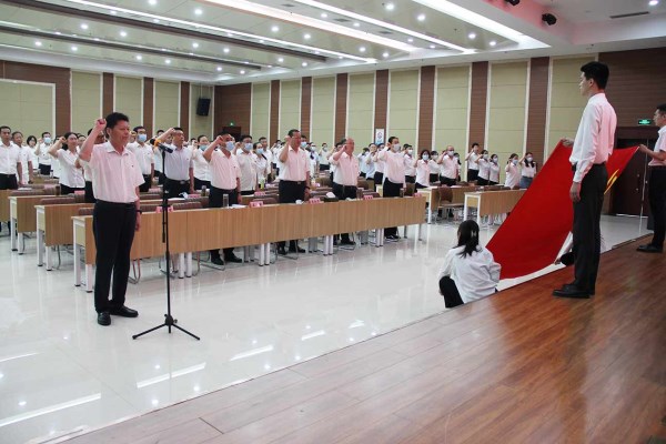 會前,在菏建國投黨委書記、董事長李信強的帶領(lǐng)下,黨員們在鮮紅的黨旗下,重溫了入黨誓詞。大家精神飽滿、聲音鏗鏘有力,再次向黨和人民作出莊嚴的承諾,進一步增強了公司廣大黨員干部的榮譽感和歸屬感,增強黨員干部的黨性意識、宗旨意識。