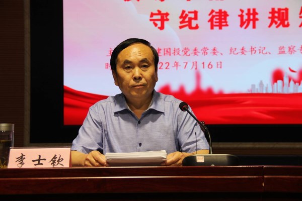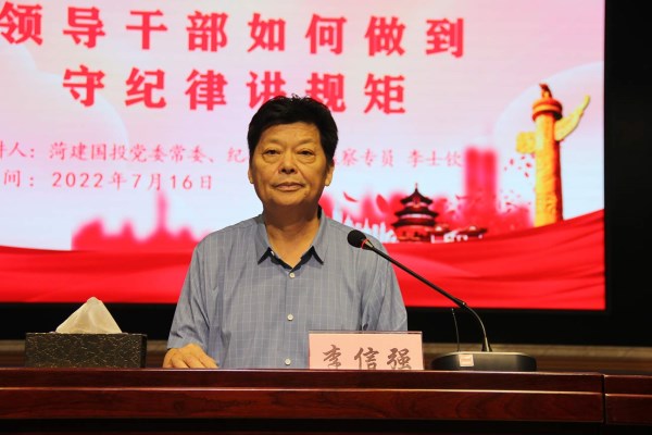 7月16日上午,菏建國(guó)投黨委常委、紀(jì)委書記、監(jiān)察專員李士欽以“領(lǐng)導(dǎo)干部如何做到守紀(jì)律講規(guī)矩”為主題,為公司黨員干部上了一堂生動(dòng)的廉政專題黨課。菏建國(guó)投黨委書記、董事長(zhǎng)李信強(qiáng)主持會(huì)議。菏建國(guó)投領(lǐng)導(dǎo)班子全體,國(guó)投機(jī)關(guān)中層副職及以上同志、全體黨員,菏建集團(tuán)領(lǐng)導(dǎo)班子全體、各處室負(fù)責(zé)人、權(quán)屬各單位主要負(fù)責(zé)人,國(guó)投各權(quán)屬單位領(lǐng)導(dǎo)班子全體同志參加會(huì)議。