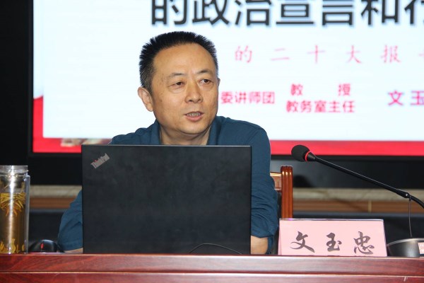 ![]() 市委講師團(tuán)教授、教務(wù)室主任文玉忠作黨的二十大精神專題講座 |