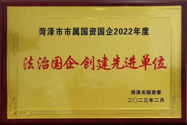 ![]() 菏建國投被授予“2022年度法治國企創(chuàng)建先進單位”榮譽稱號 |