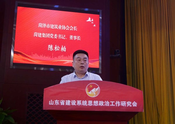 ![]() 菏澤市建筑業(yè)協(xié)會會長、菏建集團(tuán)黨委書記、董事長陳松柏作典型發(fā)言 |