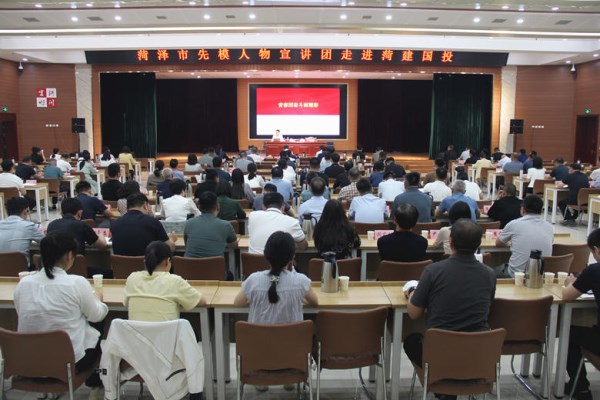 為充分發(fā)揮先模人物事跡的精神引領(lǐng)、典型示范作用,5月14日,菏澤市先模人物宣講團走進菏建國投開展宣講活動。菏澤市先模人物宣講團成員、中共菏澤市委黨校黨史黨建教研室講師毛寬海作“青春因奮斗而精彩”宣講報告。菏建國投黨委副書記、紀(jì)委書記賈照軍主持活動并講話。菏建國投領(lǐng)導(dǎo)班子成員,國投機關(guān)全體工作人員,各權(quán)屬單位領(lǐng)導(dǎo)班子全體同志,三級單位主要負(fù)責(zé)同志參加活動。