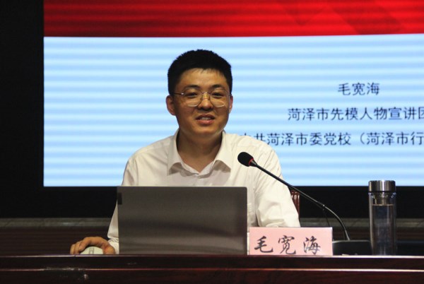 ![]() 菏澤市先模人物宣講團成員、中共菏澤市委黨校黨史黨建教研室講師毛寬海作“青春因奮斗而精彩”宣講報告 |