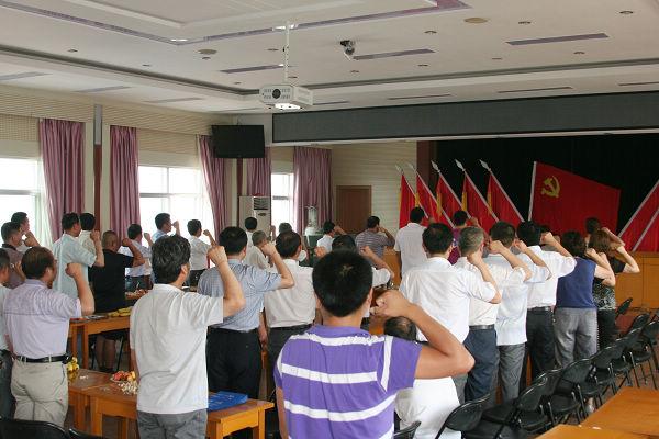 會(huì)前,集團(tuán)組織新黨員進(jìn)行了入黨宣誓儀式,2010年度預(yù)備黨員和與會(huì)全體黨員面對(duì)鮮紅的黨旗,舉起右手鄭重宣誓。