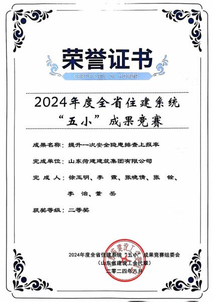 為深入貫徹落實省委、省政府“八抓二十項”創(chuàng)新舉措要求,今年以來,菏建集團深入開展“五小”成果創(chuàng)新活動,廣泛收集職工編寫的好建議、好做法、好成果,不斷強化“人人都是安全員”理念。近期,由菏建集團職工徐玉明為第一完成人編寫的“提升一次安全隱患排查上報率”項目在全省住建系統(tǒng)“五小”成果競賽中脫穎而出,榮獲二等獎。