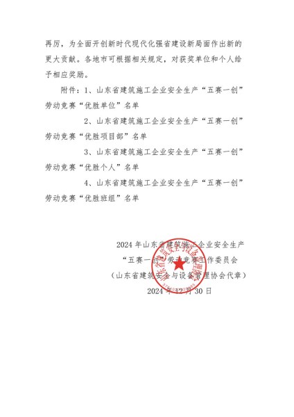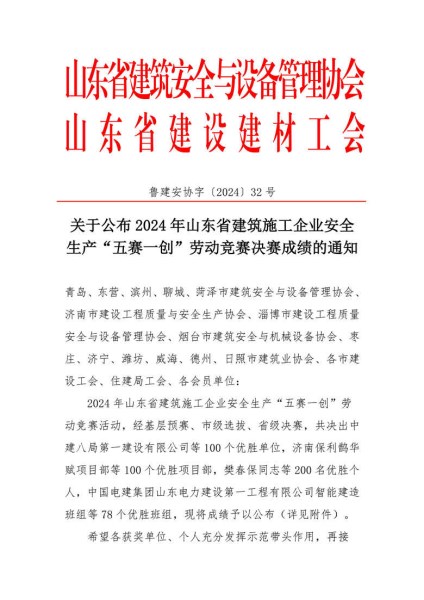 菏建集團榮獲2024年度山東省建筑施工企業(yè)安全生產(chǎn)“五賽一創(chuàng)”勞動競賽優(yōu)勝單位、優(yōu)勝班組、優(yōu)勝個人