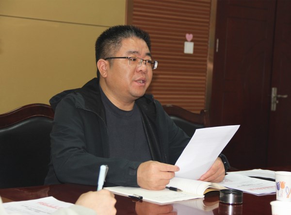 ![]() 菏建國投黨委委員、黨群工作部部長、機關黨支部書記杜令瑞主持會議 |