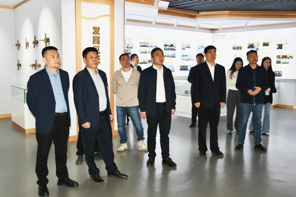 劉鵬宇一行首先參觀了菏建企業(yè)文化展廳,共同觀看了企業(yè)宣傳片。通過豐富的圖文資料、生動的影像展示,嘉賓們?nèi)媪私饬撕式瘓F七十余載的發(fā)展歷程,對菏建的深厚底蘊及輝煌成就給予了高度評價。