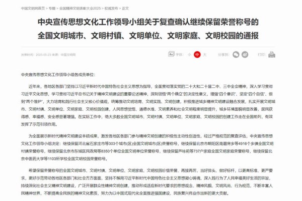 5月23日,中國(guó)文明網(wǎng)發(fā)布《中央宣傳思想文化工作領(lǐng)導(dǎo)小組關(guān)于復(fù)查確認(rèn)繼續(xù)保留榮譽(yù)稱號(hào)的全國(guó)文明城市、文明村鎮(zhèn)、文明單位、文明家庭、文明校園的通報(bào)》,菏建國(guó)投順利通過復(fù)查,繼續(xù)保持“全國(guó)文明單位”榮譽(yù)稱號(hào)。