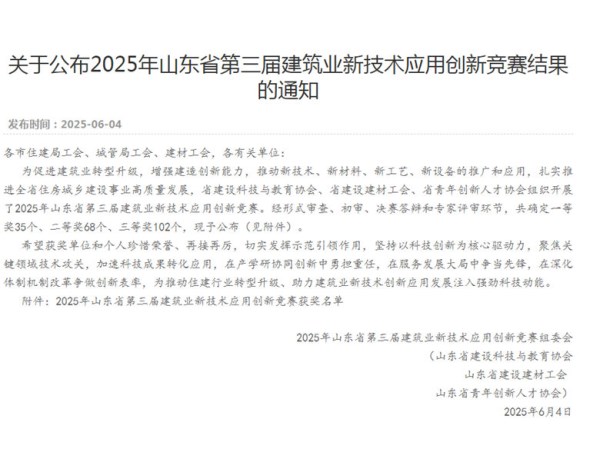 近日,由省建設(shè)科技與教育協(xié)會、省建設(shè)建材工會、省青年創(chuàng)新人才協(xié)會聯(lián)合主辦的2025年山東省第三屆建筑業(yè)新技術(shù)應(yīng)用創(chuàng)新競賽評審會在濟南順利舉行。菏建集團申報的菏澤市直初中(天香學(xué)校)項目榮獲二等獎,清菏園擴建項目榮獲三等獎。
