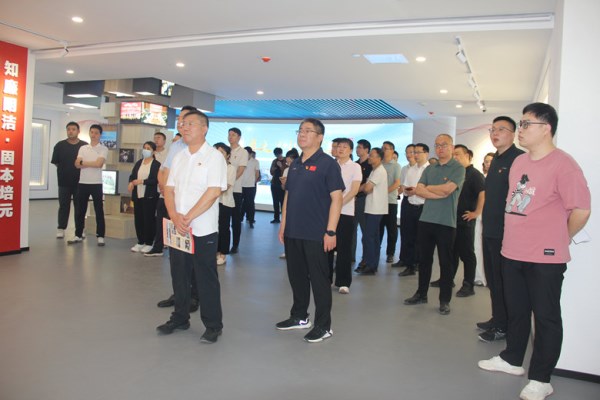 在講解員的引導下,大家有序走進“青春·清菏韻澤”廉潔文化館,依次參觀了各主題展區(qū)。通過豐富的圖文資料、生動的案例展示、新穎的多媒體互動等形式,全方位、深層次地展現(xiàn)了廉潔文化的內(nèi)涵與意義,真正讓廉潔文化內(nèi)化于心、外化于行,在每一位參觀者心中播下了崇廉尚潔的種子。參觀結(jié)束后,全體黨員面向黨旗,舉起右拳,莊嚴宣誓,重溫入黨誓詞。