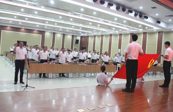 會(huì)前,菏建國(guó)投黨委書(shū)記、董事長(zhǎng)蘇紅軍帶領(lǐng)與會(huì)人員重溫了入黨誓詞。大家精神飽滿(mǎn)、聲音鏗鏘有力,面向黨旗再次進(jìn)行莊嚴(yán)宣誓。