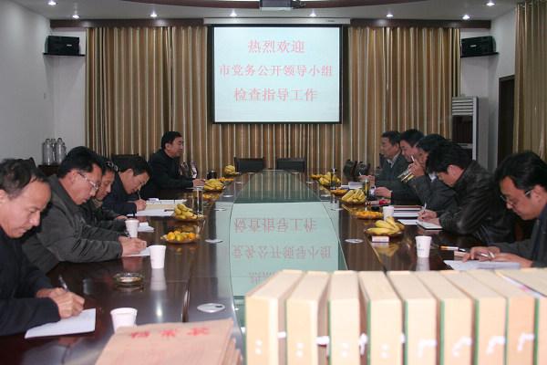 集團(tuán)黨務(wù)公開(kāi)工作領(lǐng)導(dǎo)小組組長(zhǎng)、黨委書記張廣周,黨務(wù)公開(kāi)領(lǐng)導(dǎo)小組副組長(zhǎng)、副書記、董事長(zhǎng)、總經(jīng)理李信強(qiáng),黨務(wù)公開(kāi)領(lǐng)導(dǎo)小組副組長(zhǎng)、副書記、紀(jì)委書記任永信及黨務(wù)公開(kāi)工作領(lǐng)導(dǎo)小組辦公室全體成員和相關(guān)部室負(fù)責(zé)人參加了檢查活動(dòng)。張廣周同志代表集團(tuán)黨委作了工作匯報(bào)。