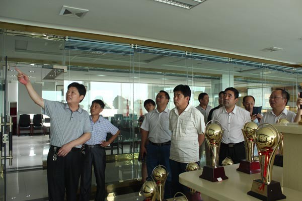 ![]() 集團黨委書記、董事長、總經(jīng)理李信強(左一)帶領(lǐng)與會人員參觀集團榮譽室