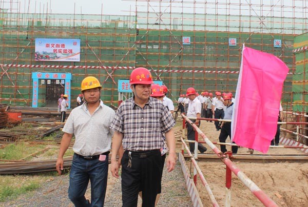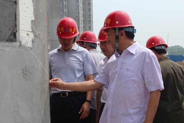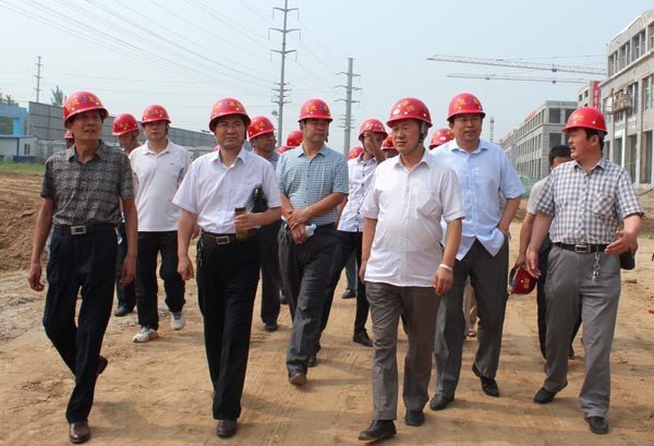 ![]() 集團(tuán)黨委書(shū)記、董事長(zhǎng)、總經(jīng)理李信強(qiáng)(右)觀摩施工現(xiàn)場(chǎng)