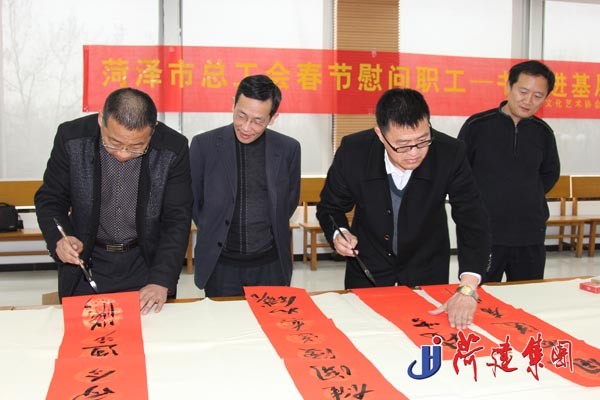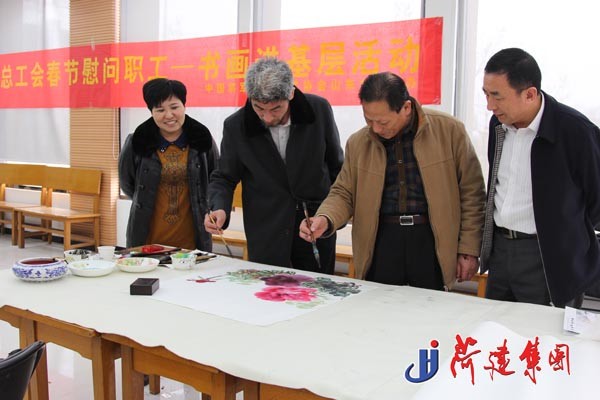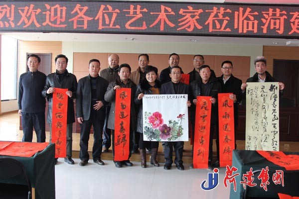 在集團(tuán)二樓會(huì)議室活動(dòng)現(xiàn)場(chǎng),書(shū)畫(huà)家們現(xiàn)場(chǎng)潑墨揮毫,吟詩(shī)作畫(huà),氣氛熱烈,贏(yíng)得了參觀(guān)人員的陣陣贊嘆聲。藝術(shù)家們現(xiàn)場(chǎng)創(chuàng)作的一幅幅春聯(lián)、書(shū)畫(huà)作品,生活氣息濃郁,創(chuàng)作手法新穎,表現(xiàn)視角獨(dú)特,展示著中國(guó)書(shū)畫(huà)藝術(shù)的深厚底蘊(yùn),既有積極向上的思想內(nèi)涵,又有較強(qiáng)的藝術(shù)感染力和較高的欣賞價(jià)值,極大開(kāi)闊了職工的視野,受到廣大職工的熱烈歡迎。上午,書(shū)畫(huà)大家們共創(chuàng)作了作品50余幅,全部現(xiàn)場(chǎng)贈(zèng)送給菏建集團(tuán)。
