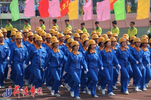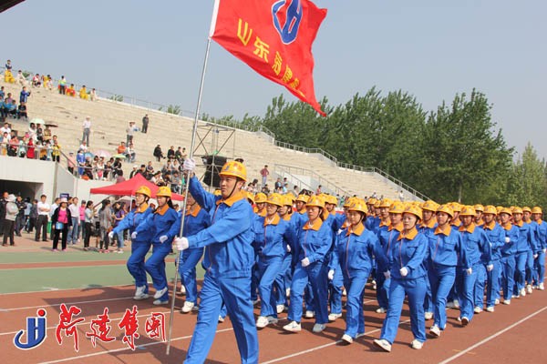 入場式上,集團(tuán)組成65人方隊(duì),他們身著統(tǒng)一鮮明的服裝,頭戴集團(tuán)標(biāo)識安全帽,踏著雄壯的《運(yùn)動(dòng)員進(jìn)行曲》,高呼“團(tuán)結(jié)拼搏、求真務(wù)實(shí),開拓進(jìn)取、爭創(chuàng)一流”的口號,精神抖擻,整齊劃一,盡情展現(xiàn)了菏建人的魅力,展示出菏建人昂揚(yáng)向上的精神風(fēng)貌,成為開幕式上一道絢麗的風(fēng)景線,贏得了主席臺上省、市領(lǐng)導(dǎo)和現(xiàn)場觀眾的一致好評。